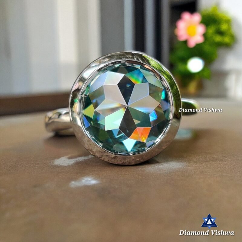 Vintage 1.85 Carat Green Moissanite Solitaire Engagement Ring – Bezel Set, Portuguese Cut