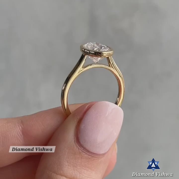 2.5Ct Oval Cut Moissanite Solitaire Engagement Ring Antique Bezel Setting in 14k Yellow Gold
