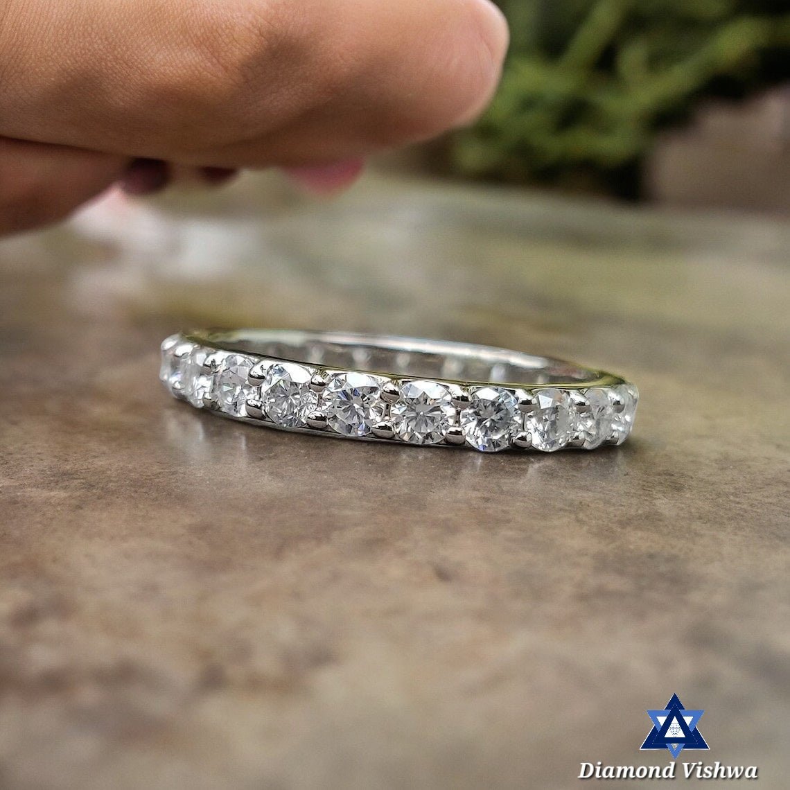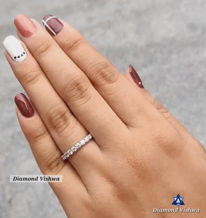 Welcome to Diamond Vishwa, where every sparkle tells a story and every ring holds a promise. Introducing our crowning jewel – the Sparkling Lab Grown Diamond Wedding Band, a treasure that embodies eternal love and unwavering commitment. Handcrafted with the utmost care, this full eternity ring features a continuous circle of radiant, round-cut Lab Grown diamonds, each one meticulously set to catch the light from every angle. It’s not just a ring; it’s a testament to everlasting love.