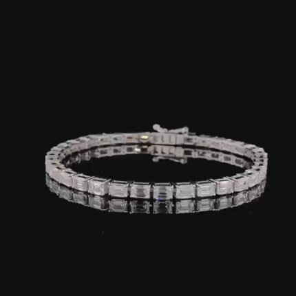 Emerald Cut Moissanite Diamond Tennis Bracelet in White Gold – Luxury Gift for Her, Anniversary Jewelry