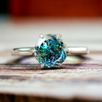 Cyan Blue Moissanite Ring – Portuguese Cut Solitaire, Engagement Ring, Perfect Proposal Gift