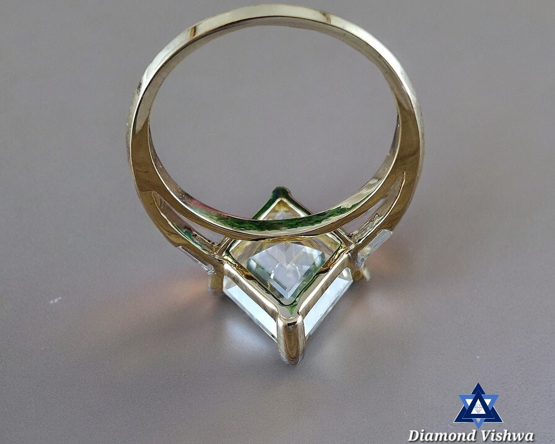 4.5 Carat Lozenge Moissanite Three Stone Engagement Wedding Ring with Baguettes in 14K Yellow Gold