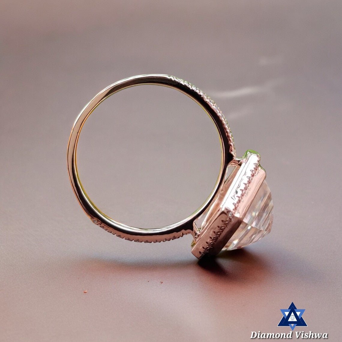 When you choose Diamond Vishwa, you're not just purchasing a ring; you're investing in a piece of art that tells your love story. The setting not only provides a secure home for the moissanite gem but also adds an air of grandeur and sophistication to the piece. This ring is not just an accessory; it's a keepsake that will be cherished for generations to come, making it the ultimate memorable anniversary gift for her.