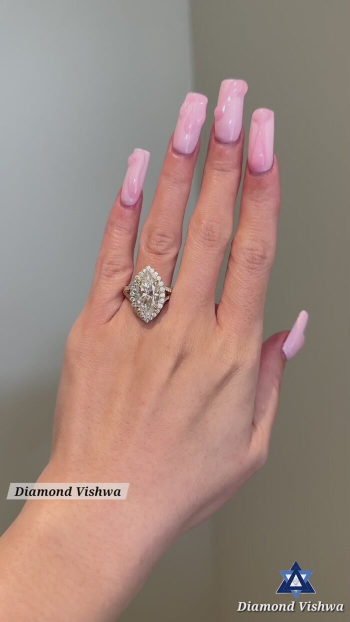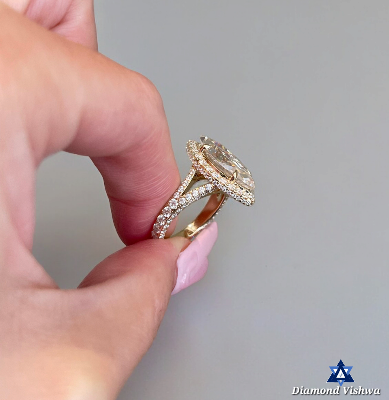 5 CT Marquise Moissanite Halo Ring, Triple Pave Band Cathedral Style, Elegant Bridal Jewelry, Perfect Engagement Gift