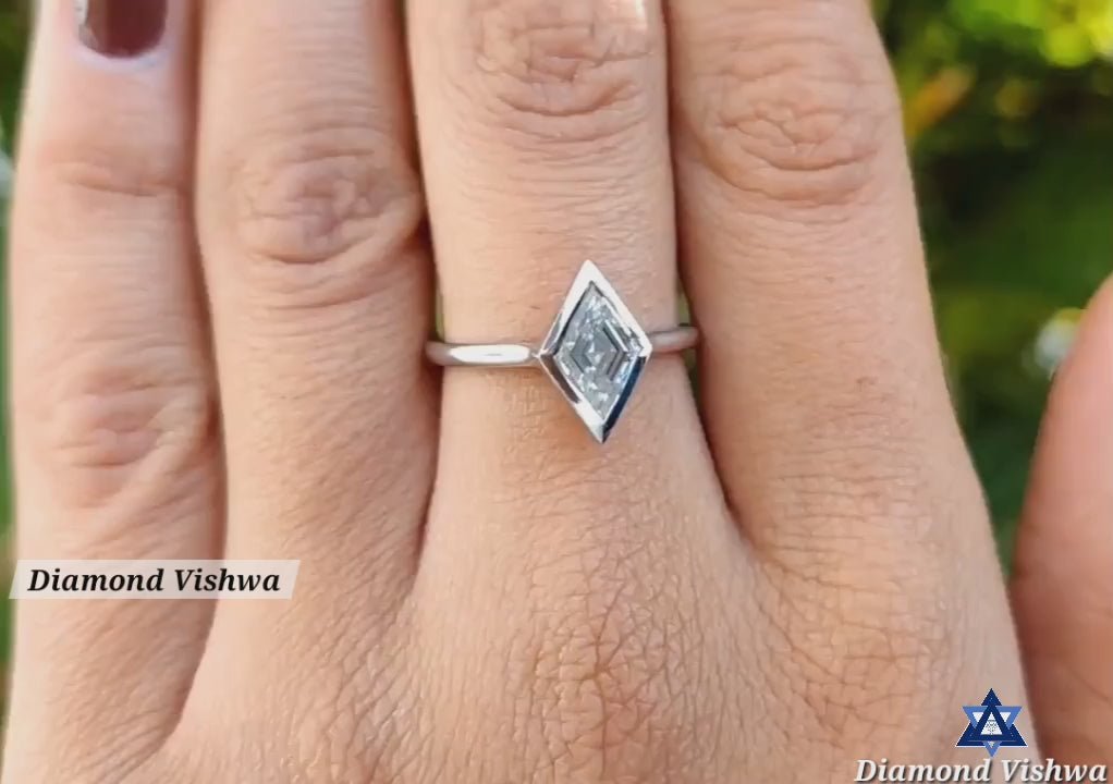 Antique 1.05 CT Lozenge Moissanite Solitaire Ring | Near Colorless Bezel Set | Unique Engagement Wedding Anniversary Gift