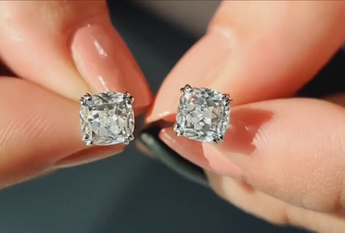 Cushion Crushed Ice Moissanite Earrings – Claw Prong Studs, Elegant Bridal Jewelry, Perfect Wedding Gift