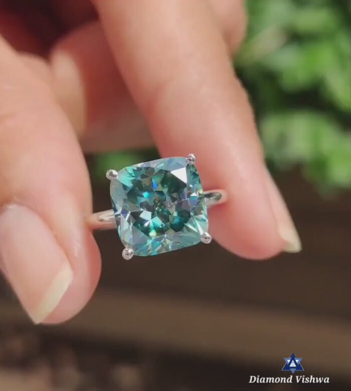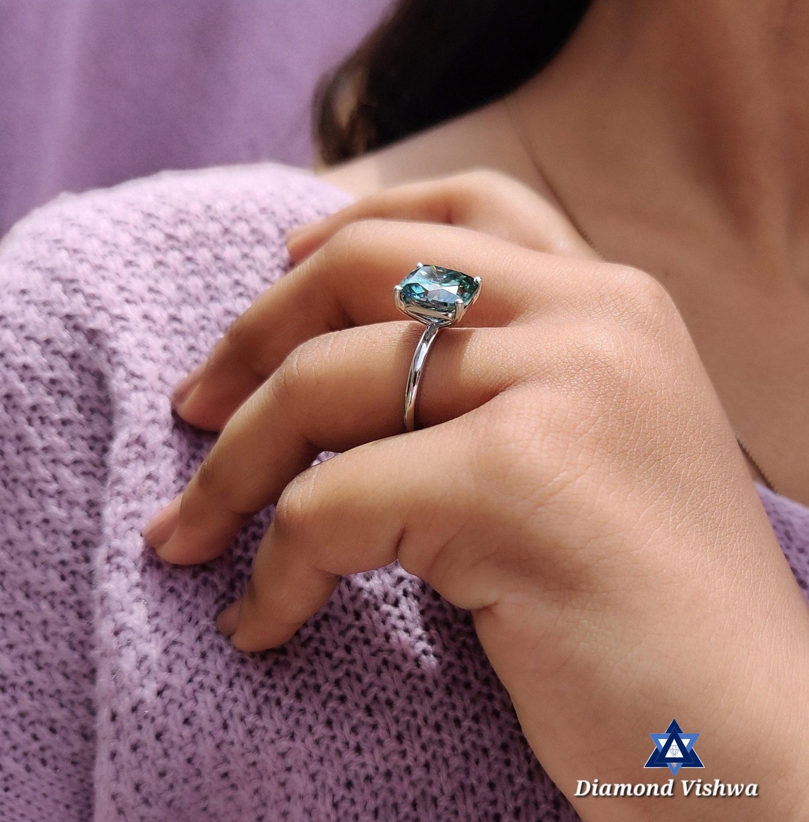 Cyan Blue 5ct Cushion Cut Moissanite Engagement Ring | Women’s Wedding Solitaire | Color Moissanite Gift