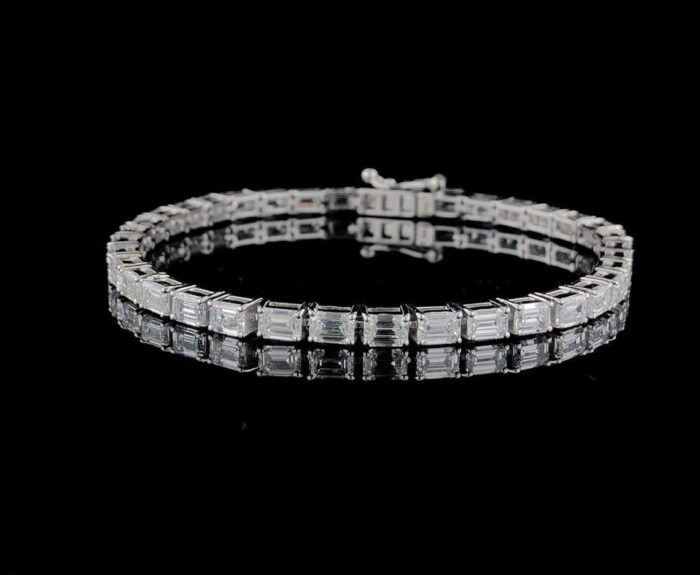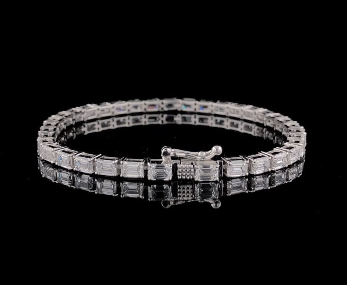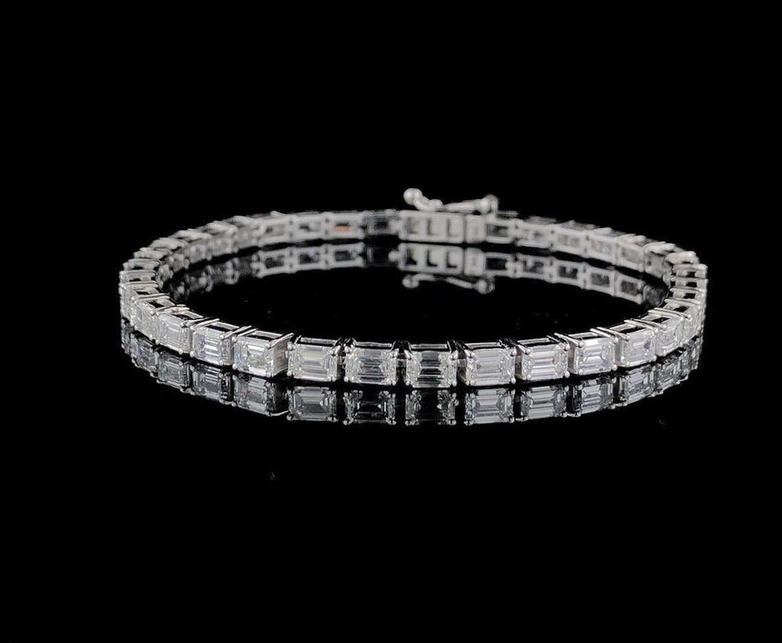 Emerald Cut Moissanite Diamond Tennis Bracelet in White Gold – Luxury Gift for Her, Anniversary Jewelry