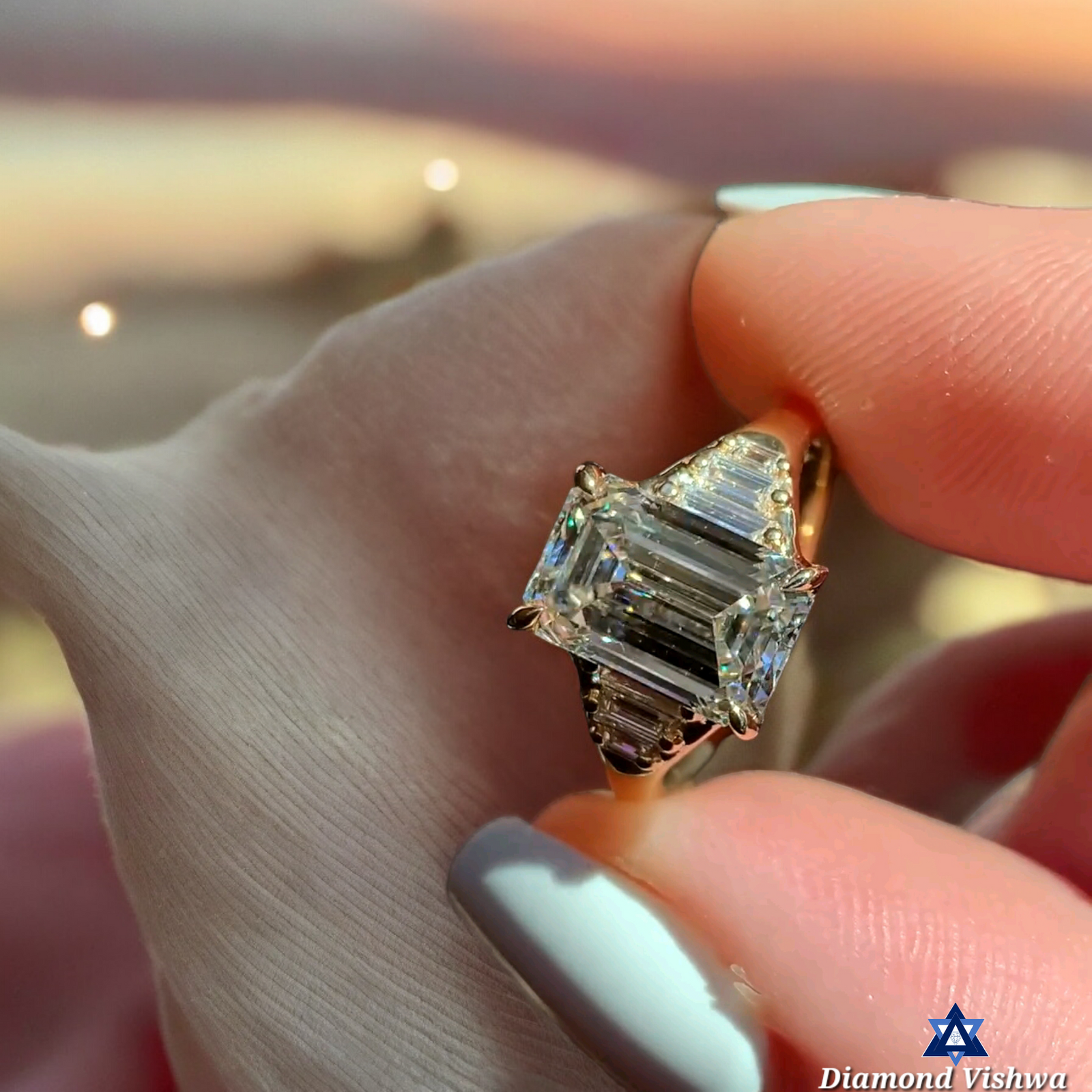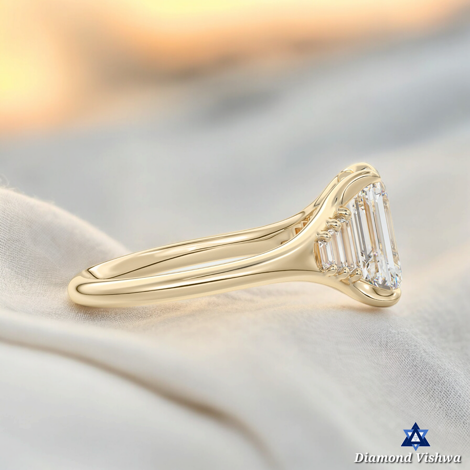 Luxurious Emerald cut Moissanite Diamond Ring, Side Stone Baguette, Romantic Proposal or Birthday Gift, Wedding gifts, Gifts for her