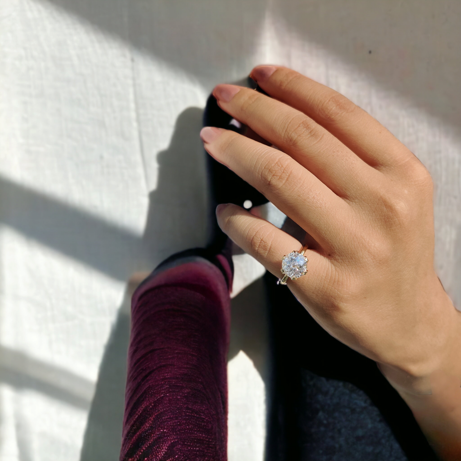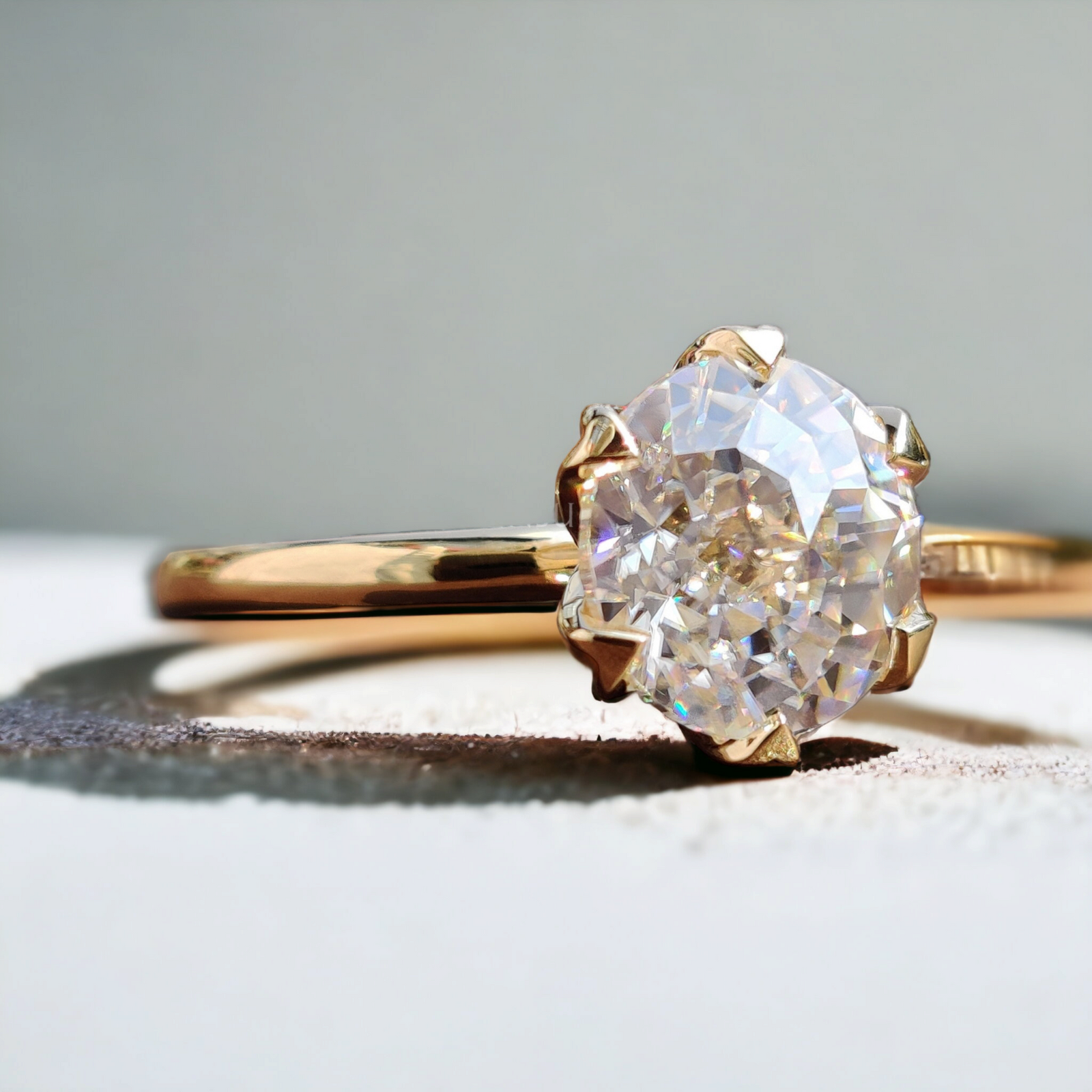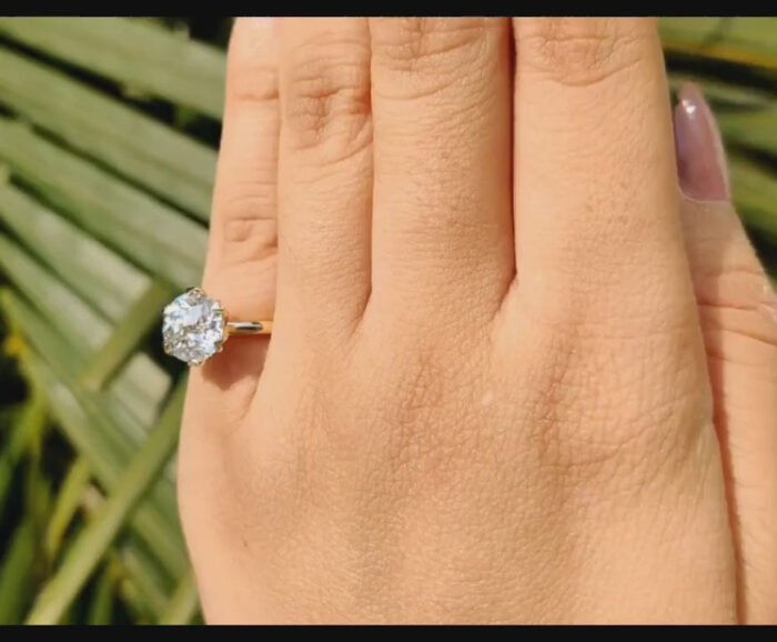 Each moissanite diamond is meticulously selected for its exceptional quality and sustainable brilliance, ensuring your engagement ring is not only a statement of luxury but also an eco-conscious choice. The antique Diamond cut, known for its intricate faceting, enhances the stone's natural sparkle, making it the centerpiece of adoration. With a band forged from the finest materials, this ring is available in a range of sizes to ensure a perfect fit. To maintain the splendor of your ring, we recommend gentle cleaning with a soft cloth and avoiding exposure to harsh chemicals.