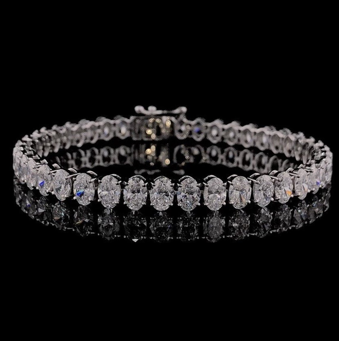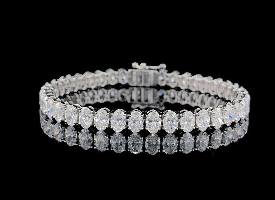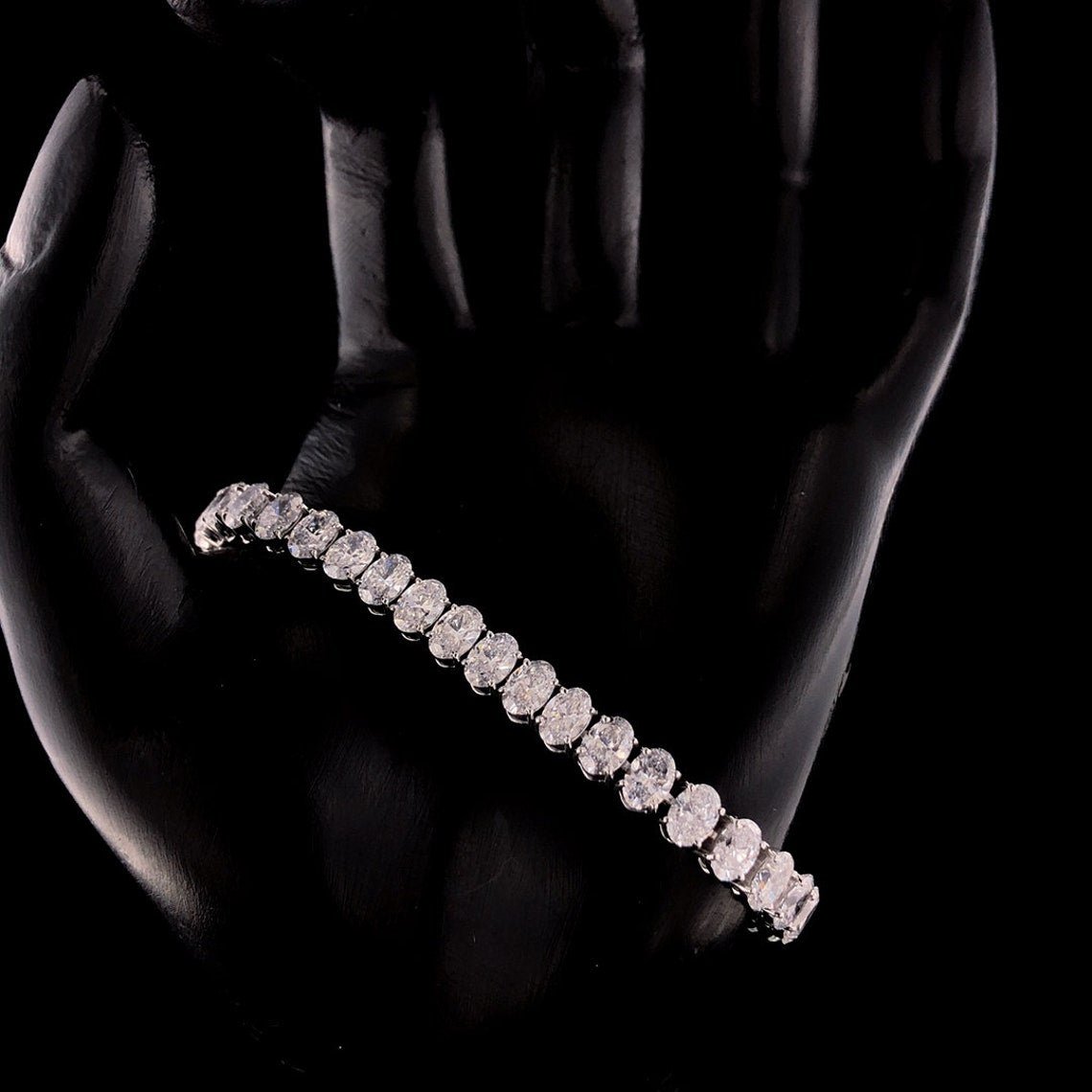 Luxurious White Gold Moissanite Bracelet – Elegant Oval Tennis Style, Perfect Women’s Anniversary Gift Jewelry, Gifts for Women