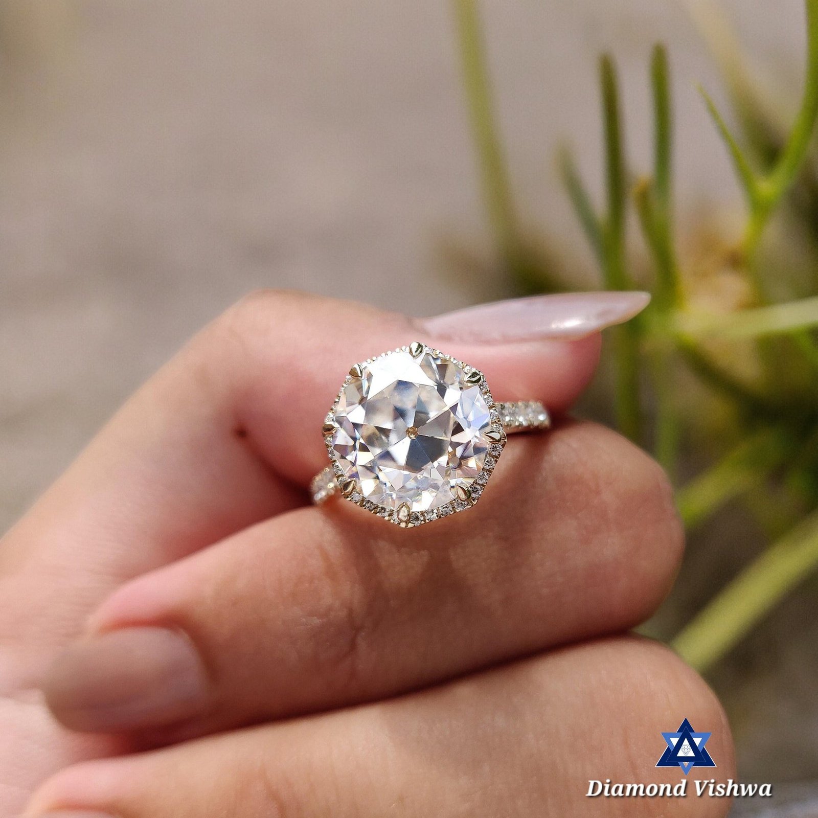 Old European Cut Moissanite Ring – Octagonal Halo Antique Style