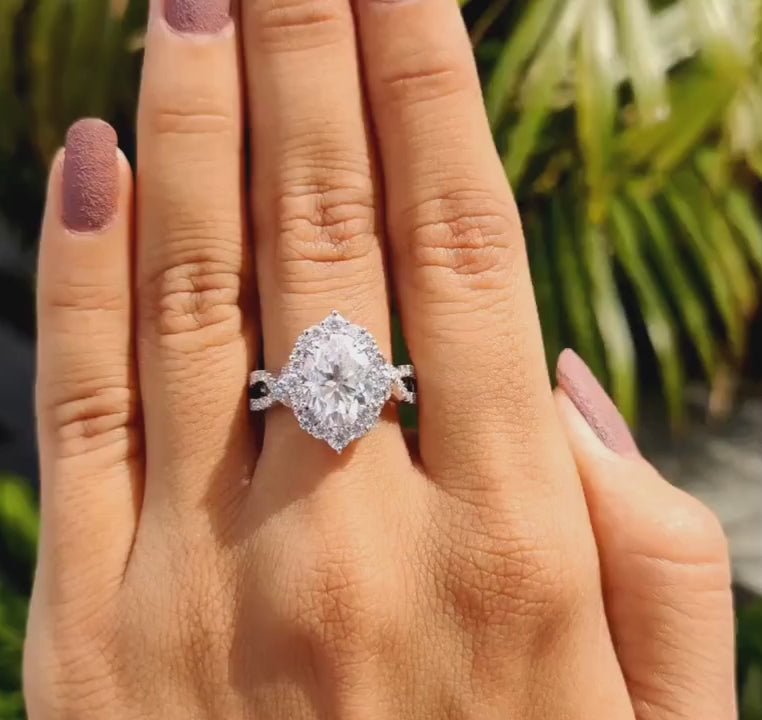 Oval Engagement Ring, Crushed Ice Oval Cut Moissanite Ring, Gifts for Women