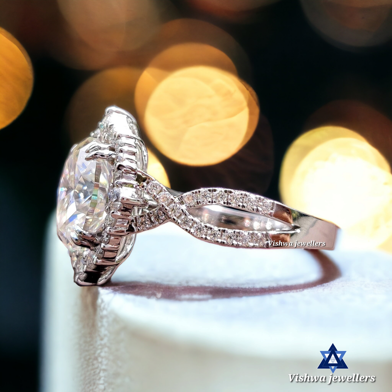As you embark on this enchanting Journey toward a lifetime of love and happiness, let Diamond Vishwa be your guide. Our commitment to excellence and passion for creating handcrafted pieces ensure that your engagement ring will be a beacon of your love, enduring as long as the stars in the sky. Embrace the magic, and let your love story be crowned with the splendor of our Luxurious Moissanite Diamond Engagement Ring.