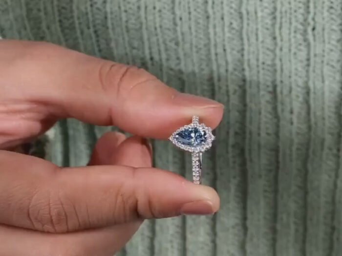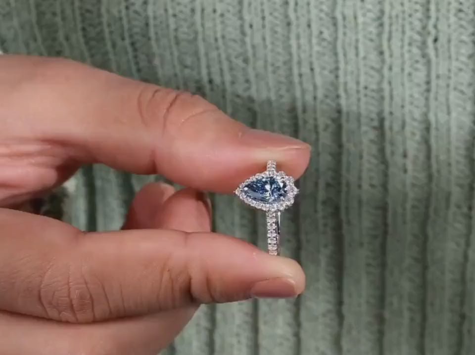 Pear Moissanite Blue Diamond Engagement Ring, Design for Women, Anniversary Wedding Ring