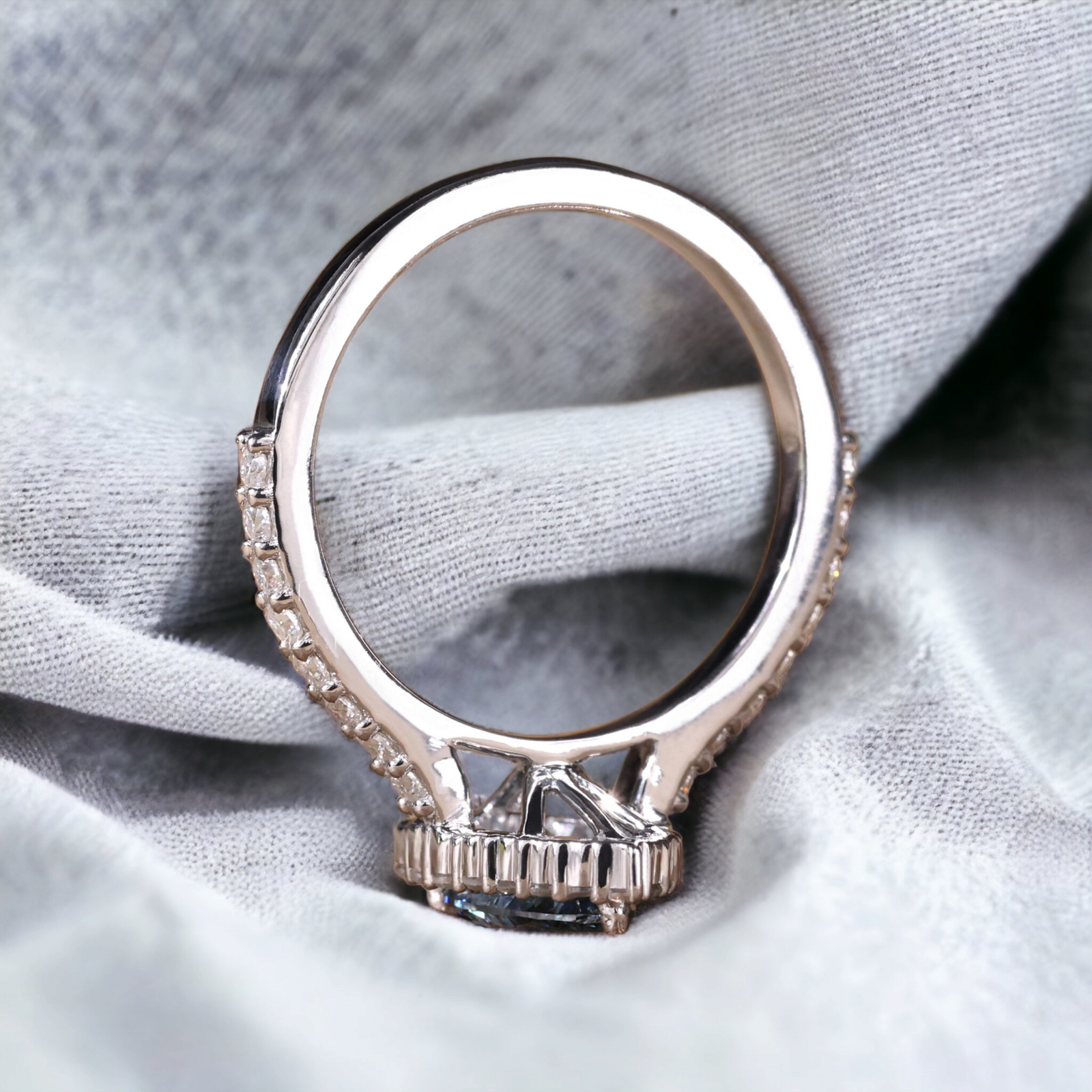 Each moissanite diamond is meticulously selected for its exceptional quality and sustainable brilliance, ensuring your engagement ring is not only a statement of luxury but also an eco-conscious choice. The antique Diamond cut, known for its intricate faceting, enhances the stone's natural sparkle, making it the centerpiece of adoration. With a band forged from the finest materials, this ring is available in a range of sizes to ensure a perfect fit. To maintain the splendor of your ring, we recommend gentle cleaning with a soft cloth and avoiding exposure to harsh chemicals.