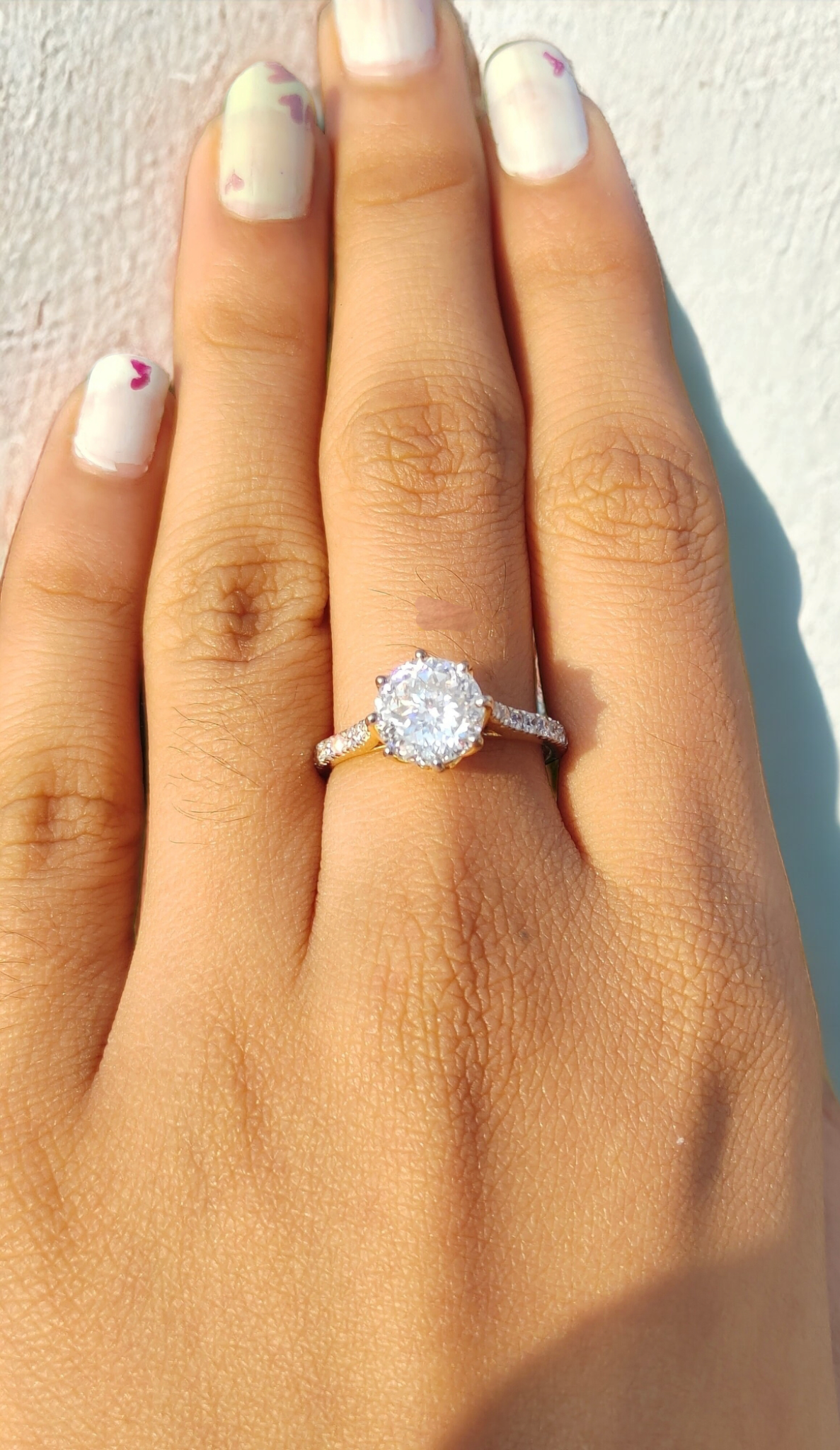 As you embark on this enchanting journey toward a lifetime of love and happiness, let Diamond Vishwa be your guide. Our commitment to excellence and passion for creating handcrafted pieces ensure that your engagement ring will be a beacon of your love, enduring as long as the stars in the sky. Embrace the magic, and let your love story be crowned with the splendor of our Luxurious Moissanite Diamond Engagement Ring.