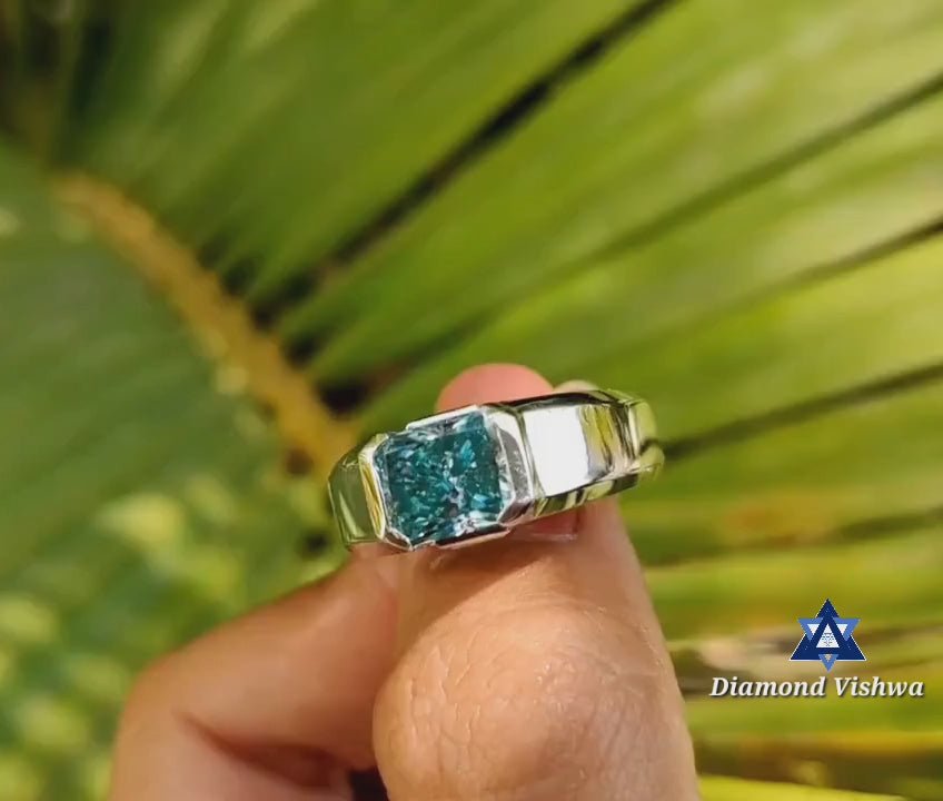 Radiant Blue Moissanite 3 Stone Men’s Ring, Engagement Wedding Anniversary Father’s