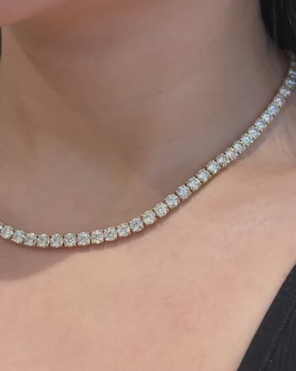 Moissanite Diamond Tennis Necklace, 4mm Round Brilliant Cut, Elegant Jewelry Gift for Anniversary