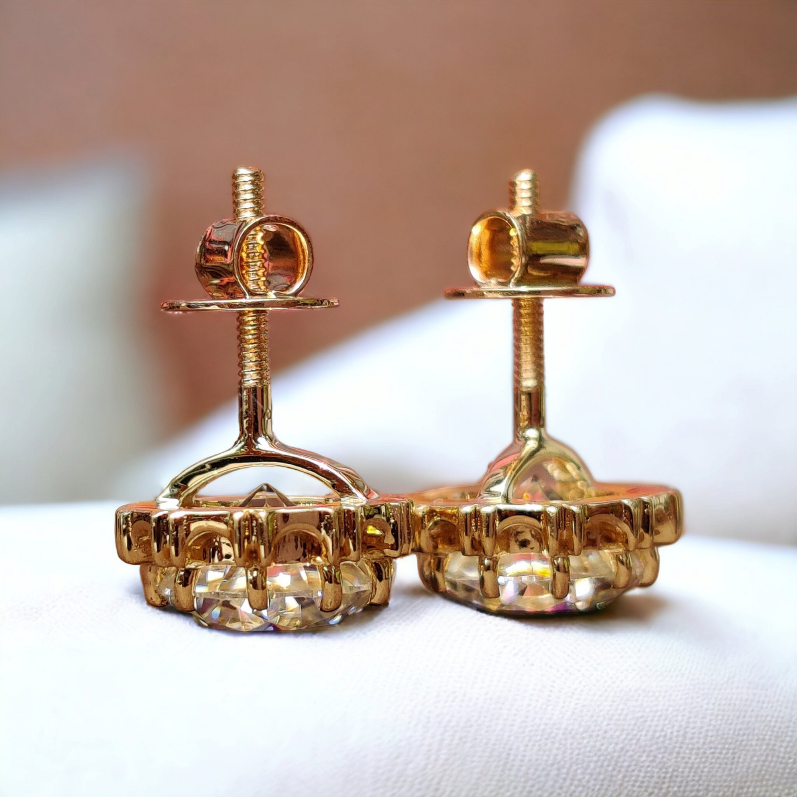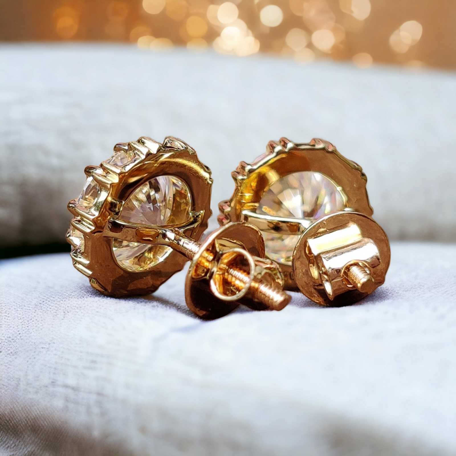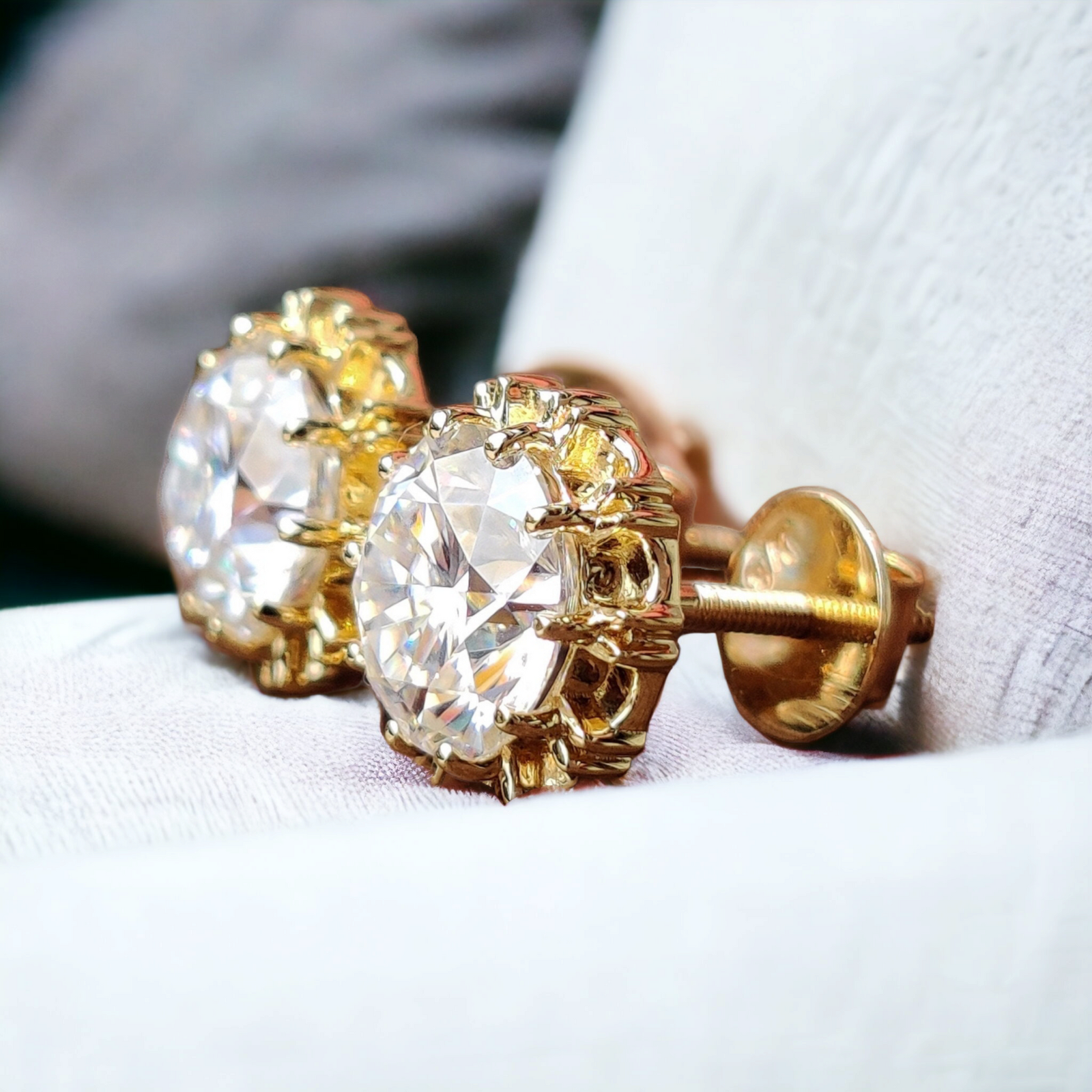 In choosing the ideal pair for you, we offer a variety of diamond sizes to match your personal style and preference. Each set is equipped with a secure Fish hooks back and Screw back earring closure, designed for comfort and ease of wear. Caring for your earrings is simple: a gentle wipe with a soft cloth will keep them shining bright, and we recommend storing them in a safe place when not in use to maintain their pristine condition.