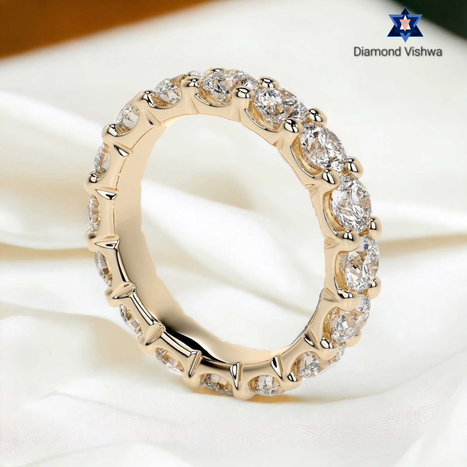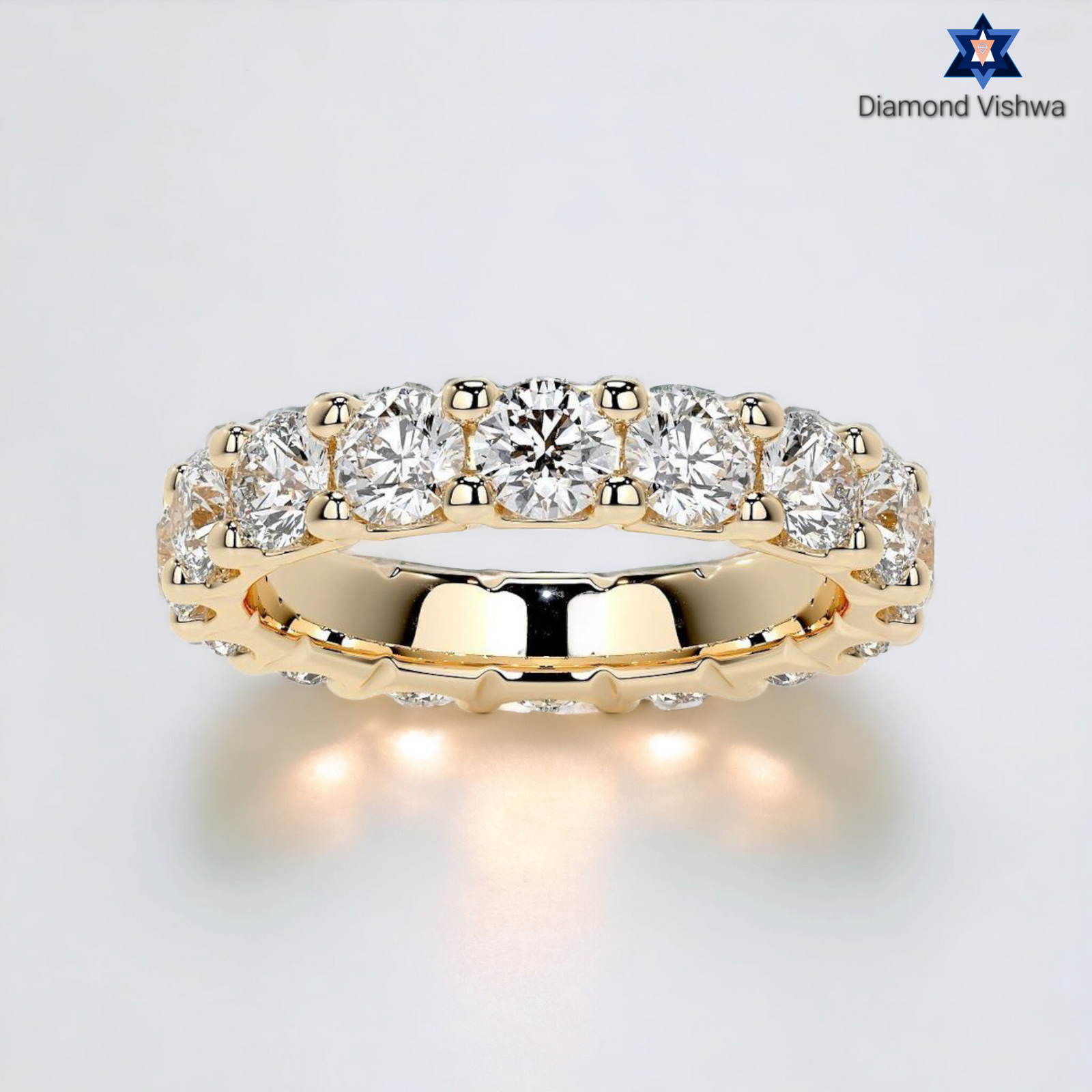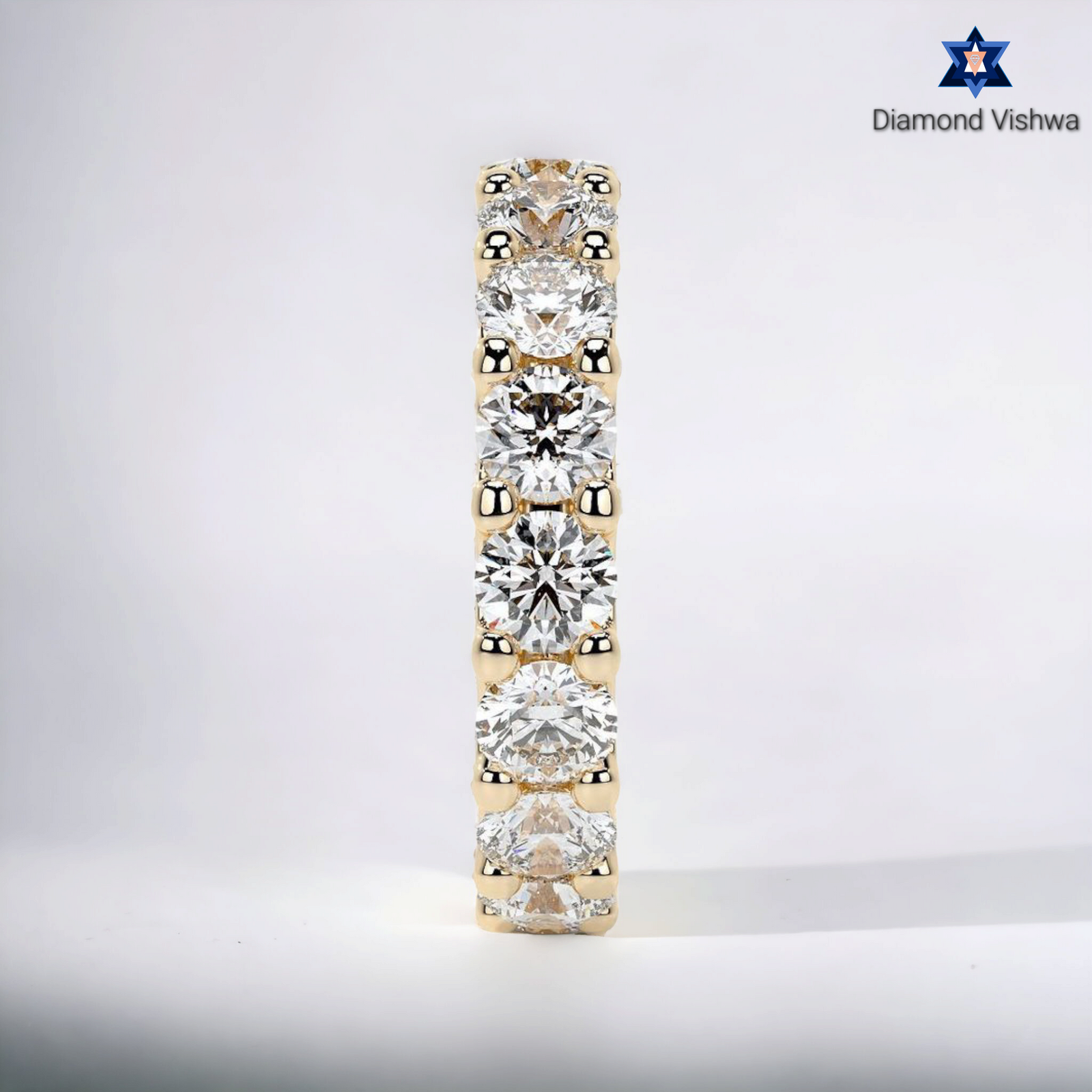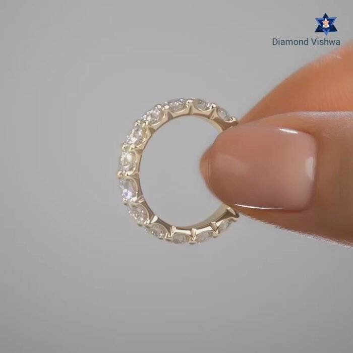 Welcome to Diamond Vishwa, where every sparkle tells a story and every ring holds a promise. Introducing our crowning jewel – the Sparkling Moissanite Diamond Wedding Band, a treasure that embodies eternal love and unwavering commitment. Handcrafted with the utmost care, this Wedding ring features a continuous circle of radiant, moissanite diamonds each one meticulously set to catch the light from every angle. It’s not just a ring; it’s a testament to everlasting love.