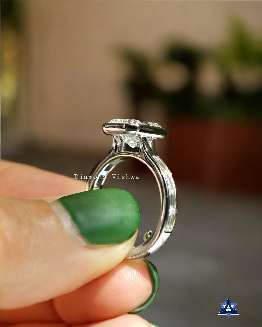 - Step into a world of timeless romance with our Luxurious Moissanite Diamond Engagement Ring. Exquisitely handcrafted to symbolize your unique love story, this antique Ring is a masterpiece of design and craftsmanship. Nestled within a majestic setting, the brilliant moissanite diamond radiates a fire and brilliance that rivals the stars. At Diamond Vishwa, we take pride in creating bespoke treasures that celebrate the most memorable moments in your life, offering customization to craft a ring as unique as your bon.