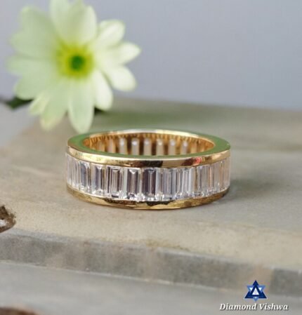 4x2mm Baguette Moissanite Eternity Band – 14K Yellow Gold Channel Set